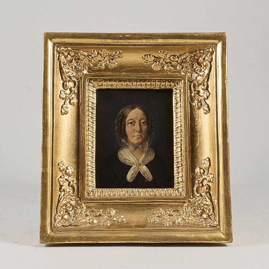 unidentified artist. No signature, empire damporträtt. Oil on canvas, 13x10 cm, outer dimensions including frame: 26x23,
