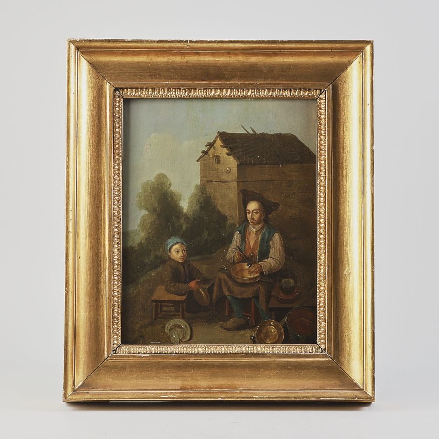 Oidentifierad konstnär. Ej signerad, Hantverkare, 1700-tal. Olja på pannå, 34x27 cm, yttermått inklusive ram: 50x42 cm