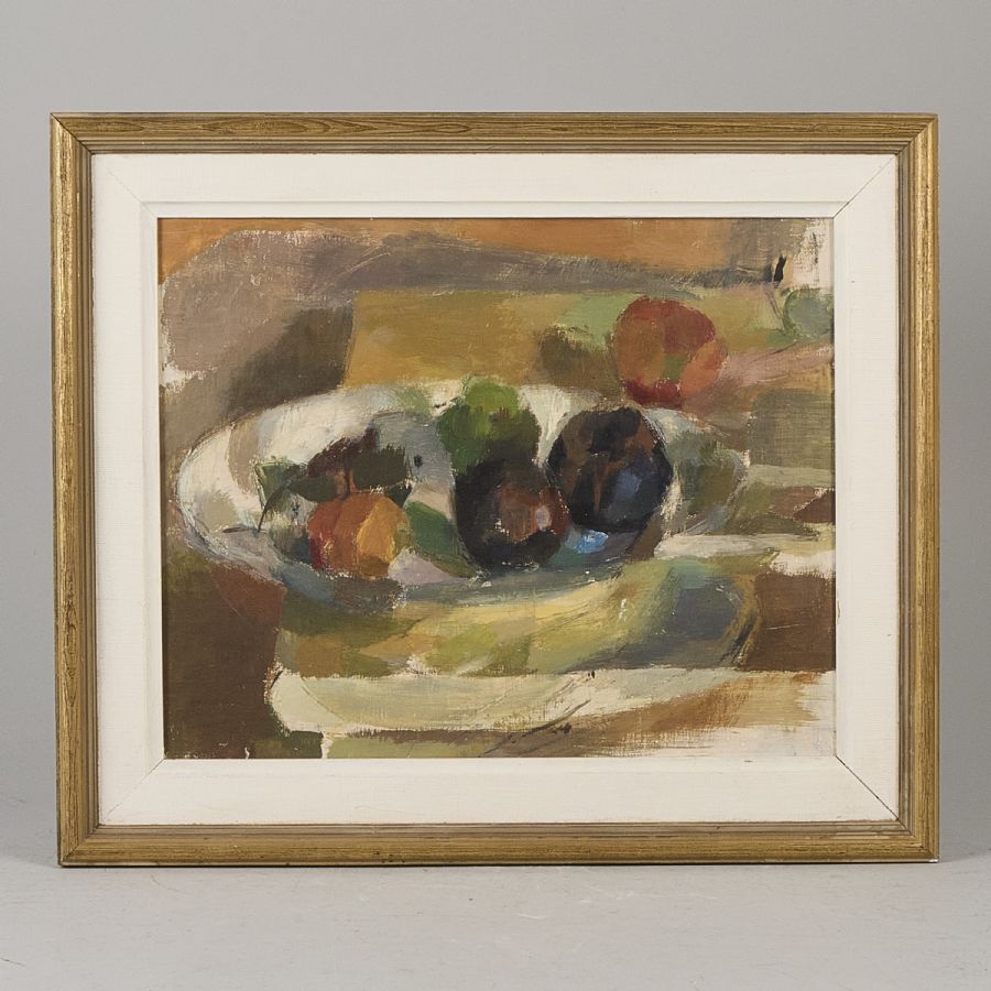 Oidentifierad konstnär. Ej signerad, stilleben. Olja på pannå, 32x40 cm, yttermått inklusive ram: 44x52 cm
