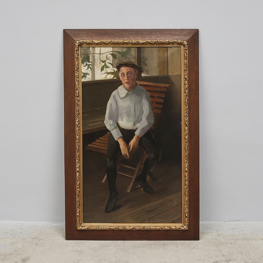 Oidentifierad konstnär. Hustegaholm, 1902. Ej signerad. Gosse, Olja på duk, 115x65 cm, yttermått inklusive ram: 138x88 cm
