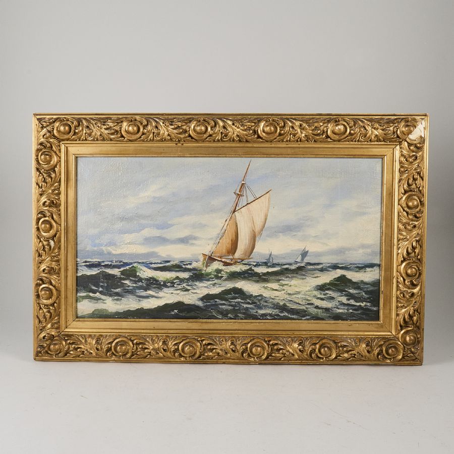 Oidentifierad konstnär, Marint motiv. Olja på duk, 33x62, yttermått inklusive ram: 50x80 cm
