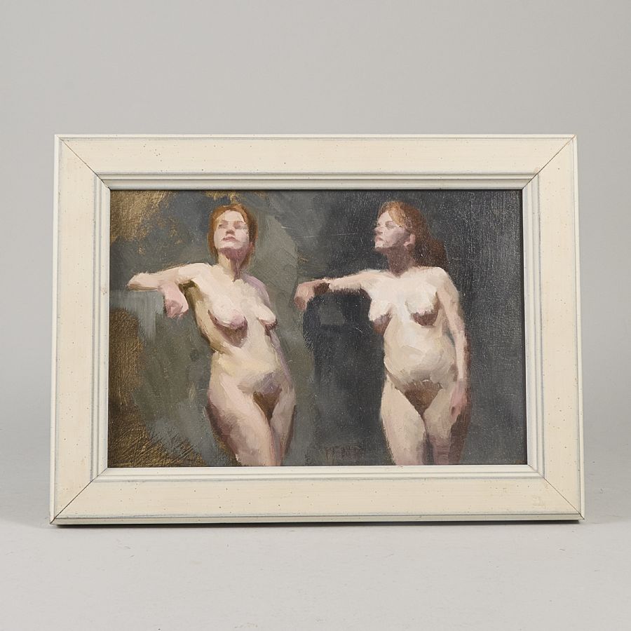 Oidentifierad konstnär. Modell, ej signerad. Olja på pannå, 20x30 cm, yttermått inklusive ram: 29x39 cm
