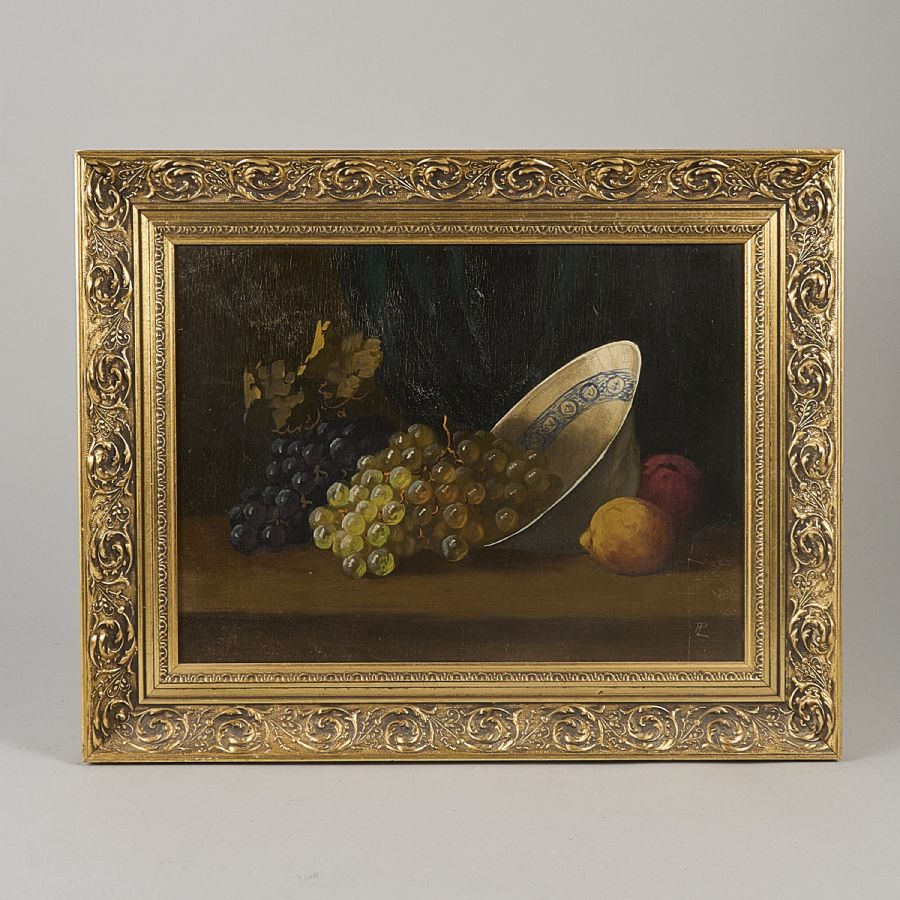 Oidentifierad konstnär. Monogramsignerad, stilleben. Olja på pannå, 29x39 cm, yttermått inklusive ram: 40x51 cm