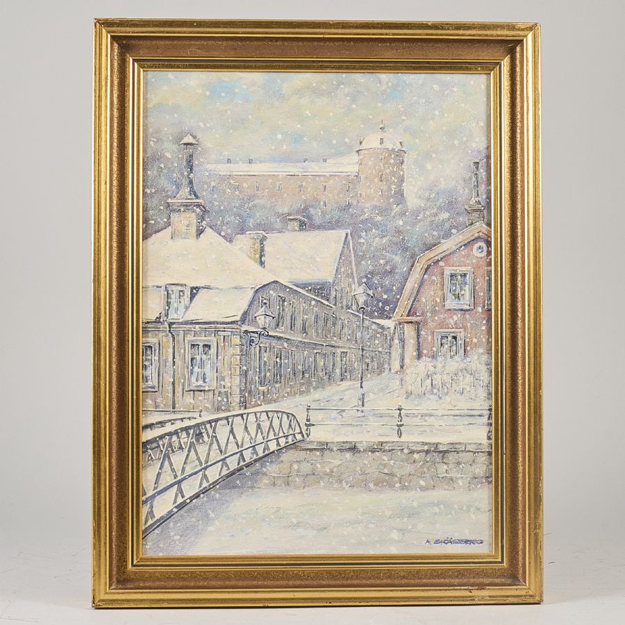 Oidentifierad konstnär. Signerad A Skärberg, Uppsala slott. Olja på pannå, 45x33 cm, yttermått inklusive ram: 54x42 cm