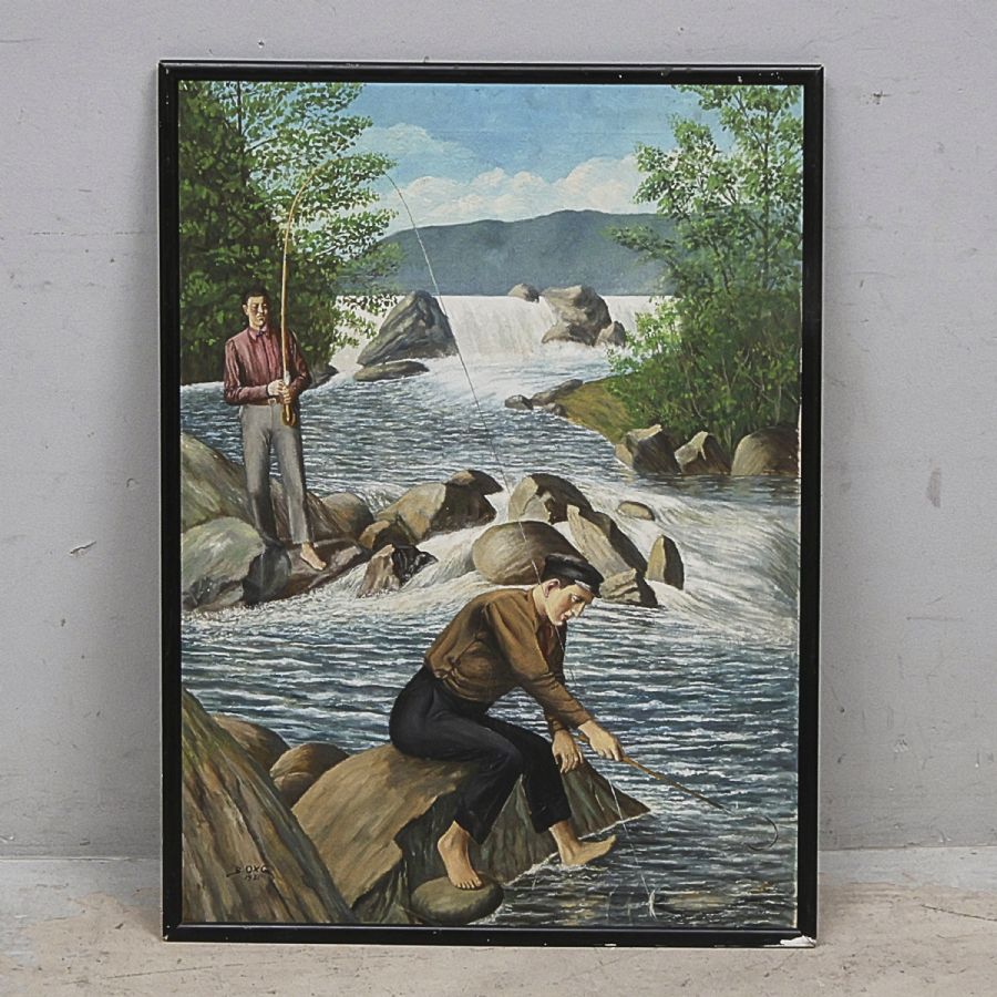 Oidentifierad konstnär. Signerad, daterad 1913, fiskare. Olja på duk, 93x68 cm, yttermått inklusive ram: 96x72 cm