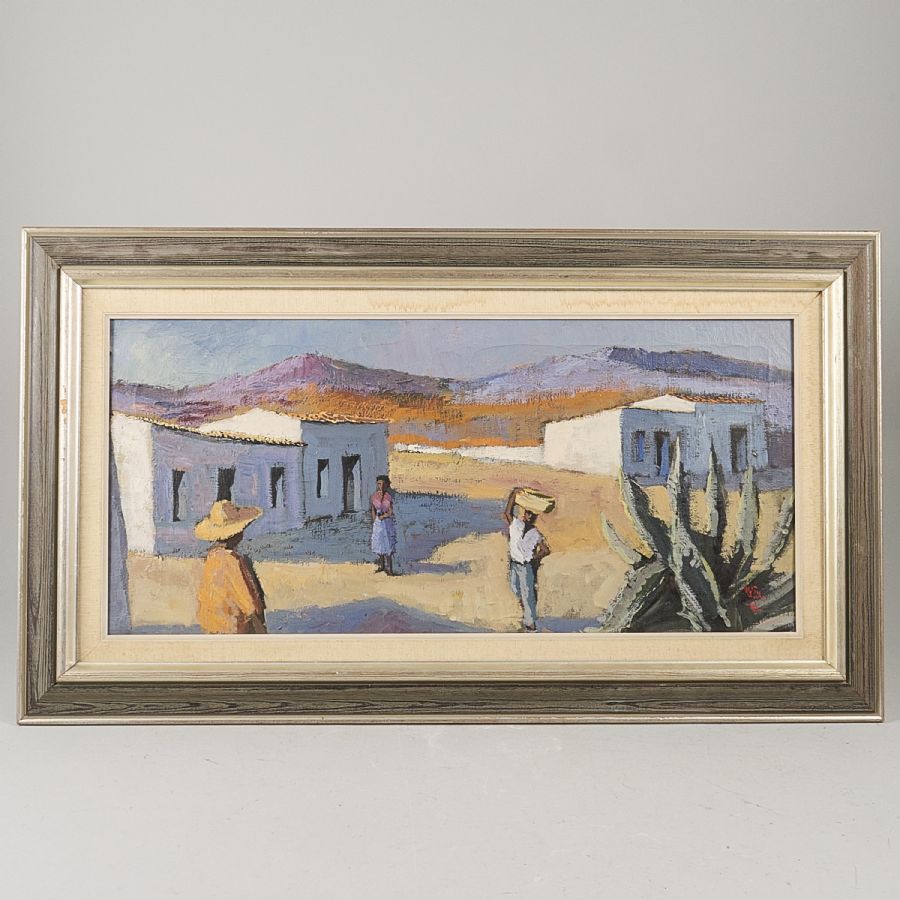 Oidentifierad konstnär. Signerad, daterad -61. Olja på duk, 30x64 cm, yttermått inklusive ram: 47x82 cm