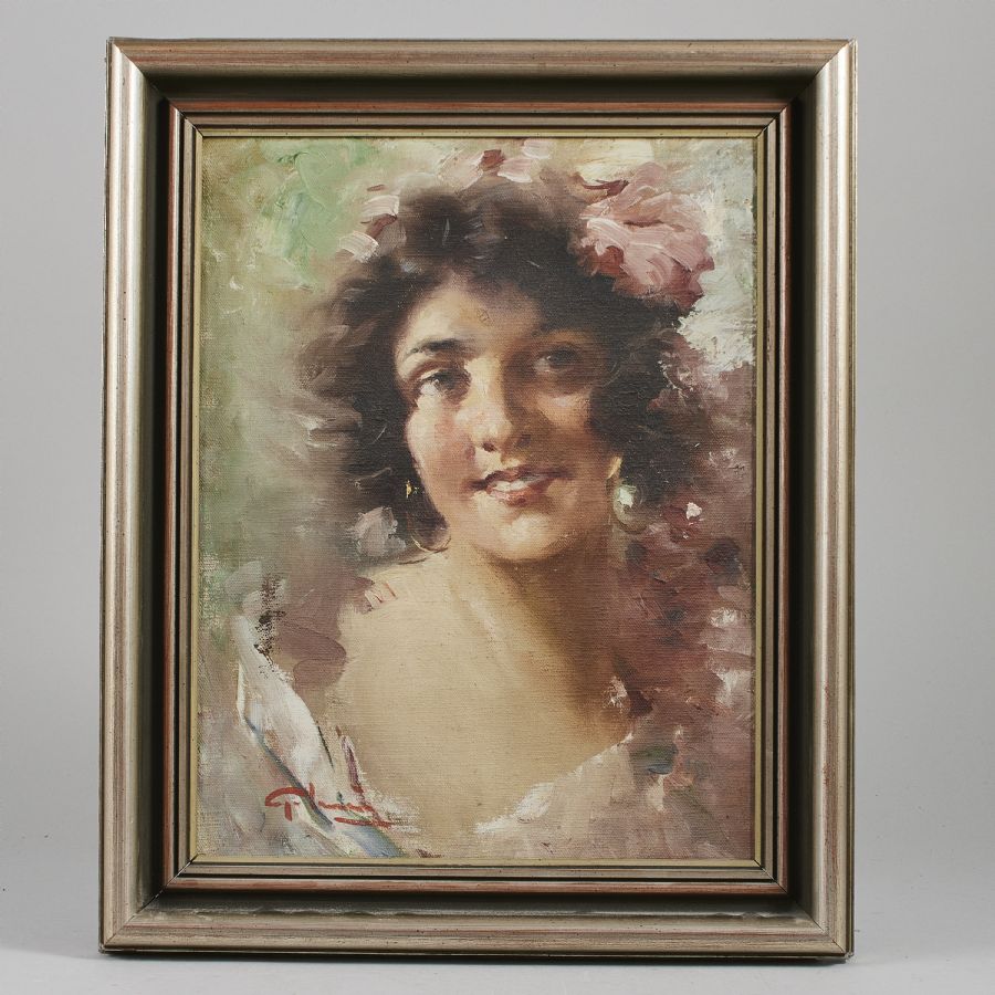 Oidentifierad konstnär. Signerad, flicka. Olja på duk, 38x29, yttermått inklusive ram: 48x40 cm