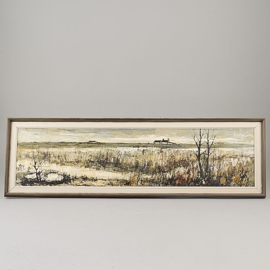 Oidentifierad konstnär. Signerad Frank, kust. Olja på duk, 21x87 cm, yttermått inklusive ram: 29x95