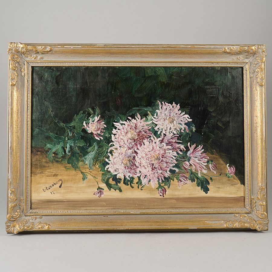 Oidentifierad konstnär. Signerad Runeborg, stilleben. Olja på duk, 42x60 cm, yttermått inklusive ram: 52x72 cm