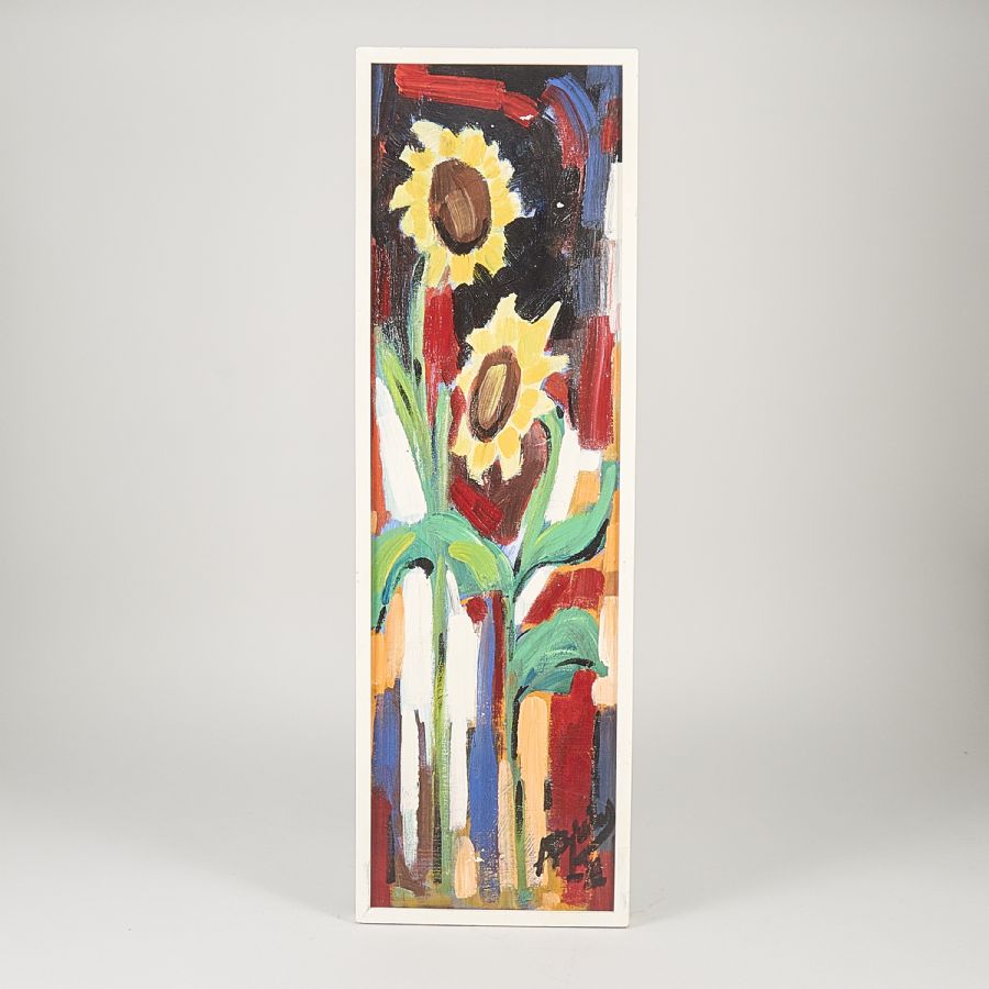 Oidentifierad konstnär. Signerad, solrosor. Olja på duk, yttermått inklusive ram: 82x26 cm