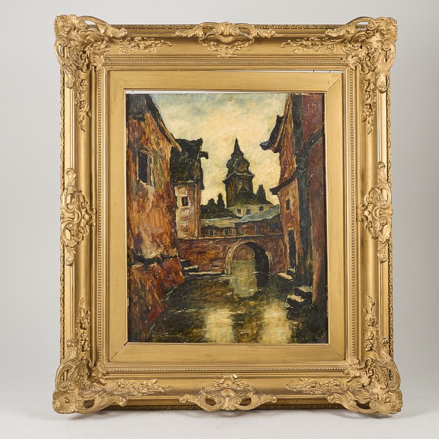 Oidentifierad konstnär. Signerad, stadsmotiv. Olja på pannå, 48x38 cm, yttermått inklusive ram: 73x65