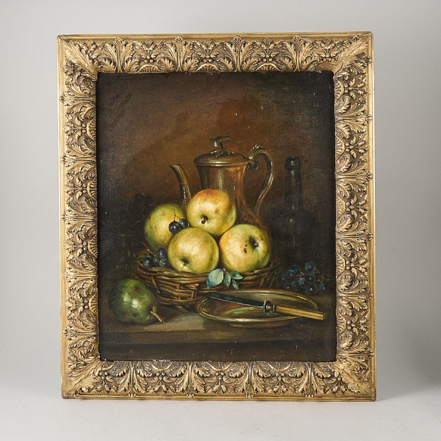 Oidentifierad konstnär. Signerad, stilleben med äpplen, 1800-tal. Olja på duk, 62x51 cm, yttermått inklusive ram: 79x67 cm