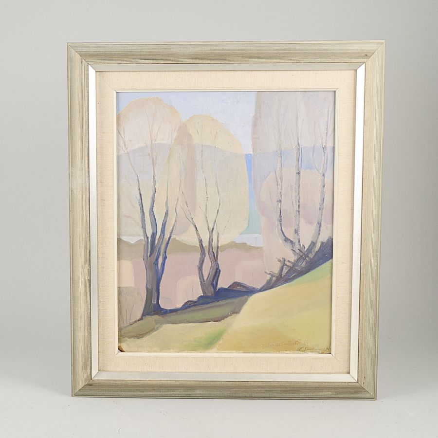 Oidentifierad konstnär. Signerad, "Tre Björkar". Olja på pannå, 45x37 cm, yttermått inklusive ram: 62x53 cm