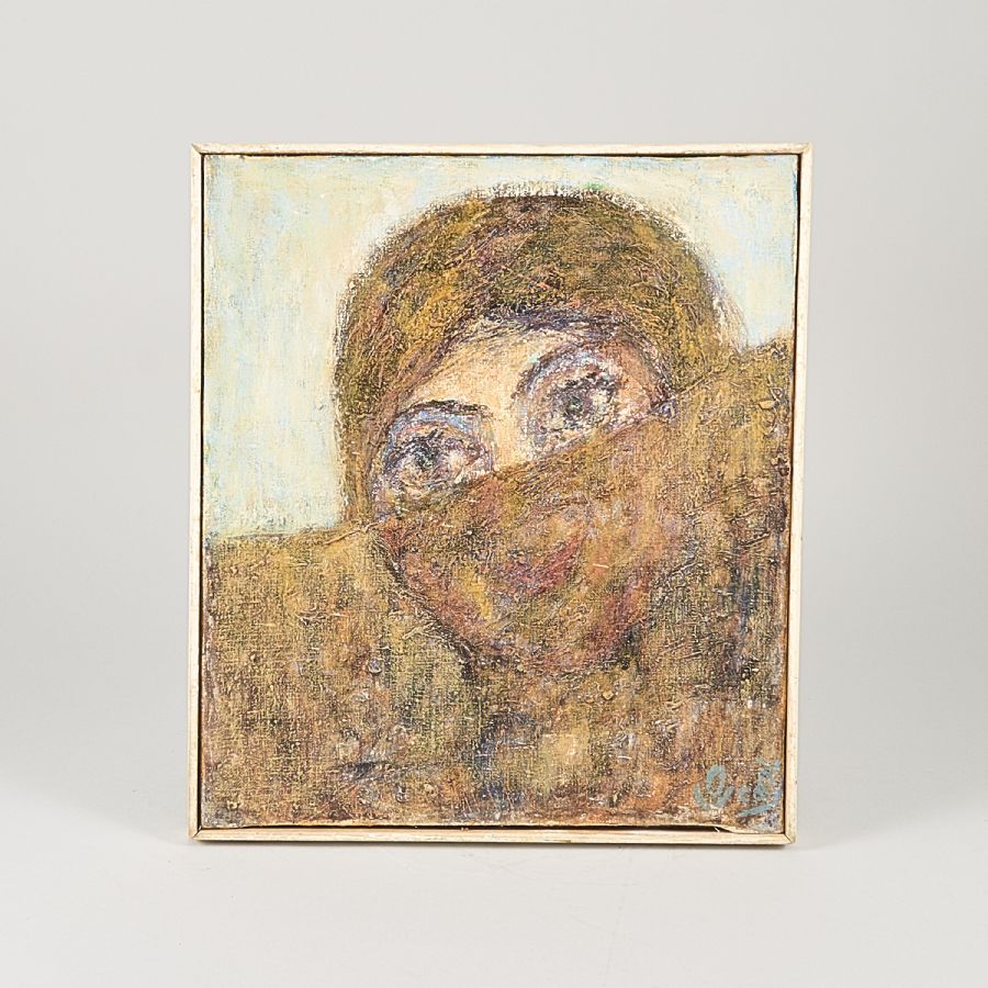 Oljemålning, "Slöjan". Signerad. Olja på duk, yttermått inklusive ram: 41x36 cm