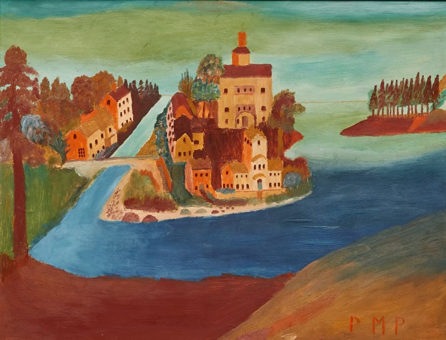 Oljemålning, Primus Mortimer Pettersson (1895-1975), 'Kanalen till intet', signerad, PMP, 49x64