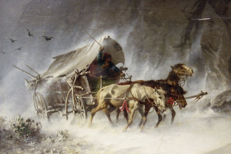Sign J A Hoffman, Ekipage i vinterlandskap, 42 x 55