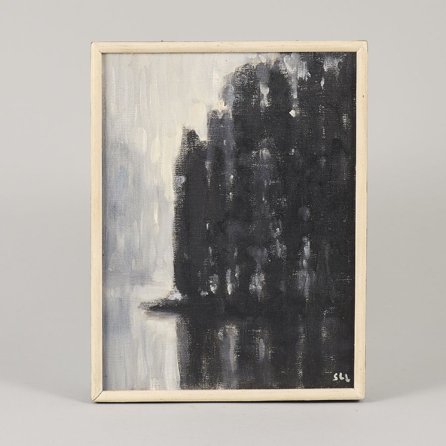 Signe Lanje, "Udde Motljus II", signed with monogram, -81. Oil on canvas, outer dimensions including frame: 31x24,