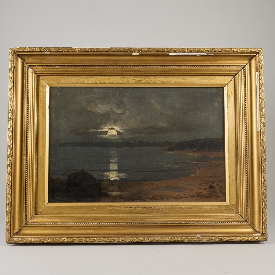 signerad Mignot, månsken. Olja på duk, 30x45 cm, yttermått inklusive ram: 49x64 cm