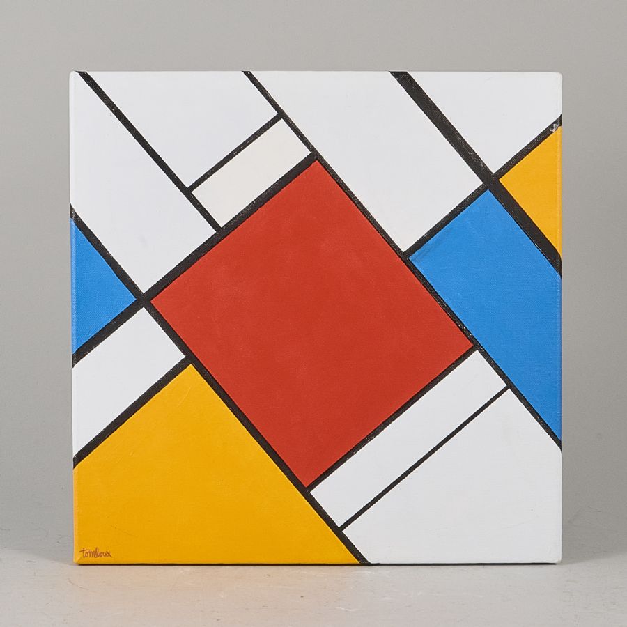 Tom Loux, Hommage de Mondrian. Signerad. Olja på duk, oramad, 40x40 cm