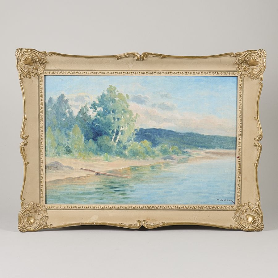 Uuno Soldan (1883-1954), Finland, Signerad, sjölandskap. Olja på duk, 37x54 cm, ytt ermått inklusive ram: 50x67 cm