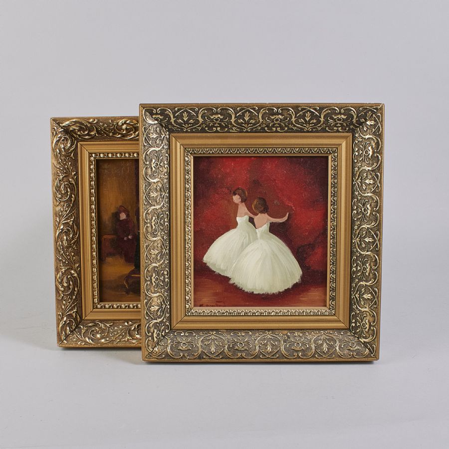 Oljemålningar, 2 st, Signerad. Olja på pannå, yttermått inklusive ram: 28x26 ca