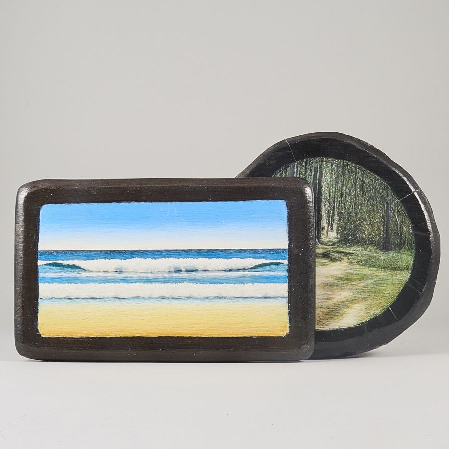 Oljemålningar, 2 st, 1 signerad, Landskap. Olja på pannå, 29x29-23x38 cm, oramad