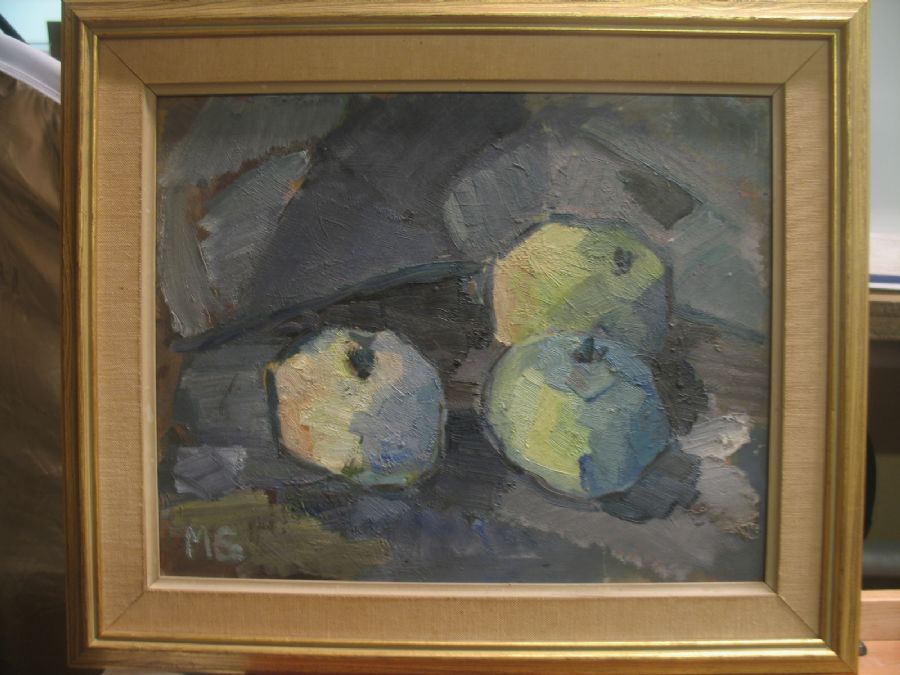 monogramsignerad, "Fruktstilleben" 32x38