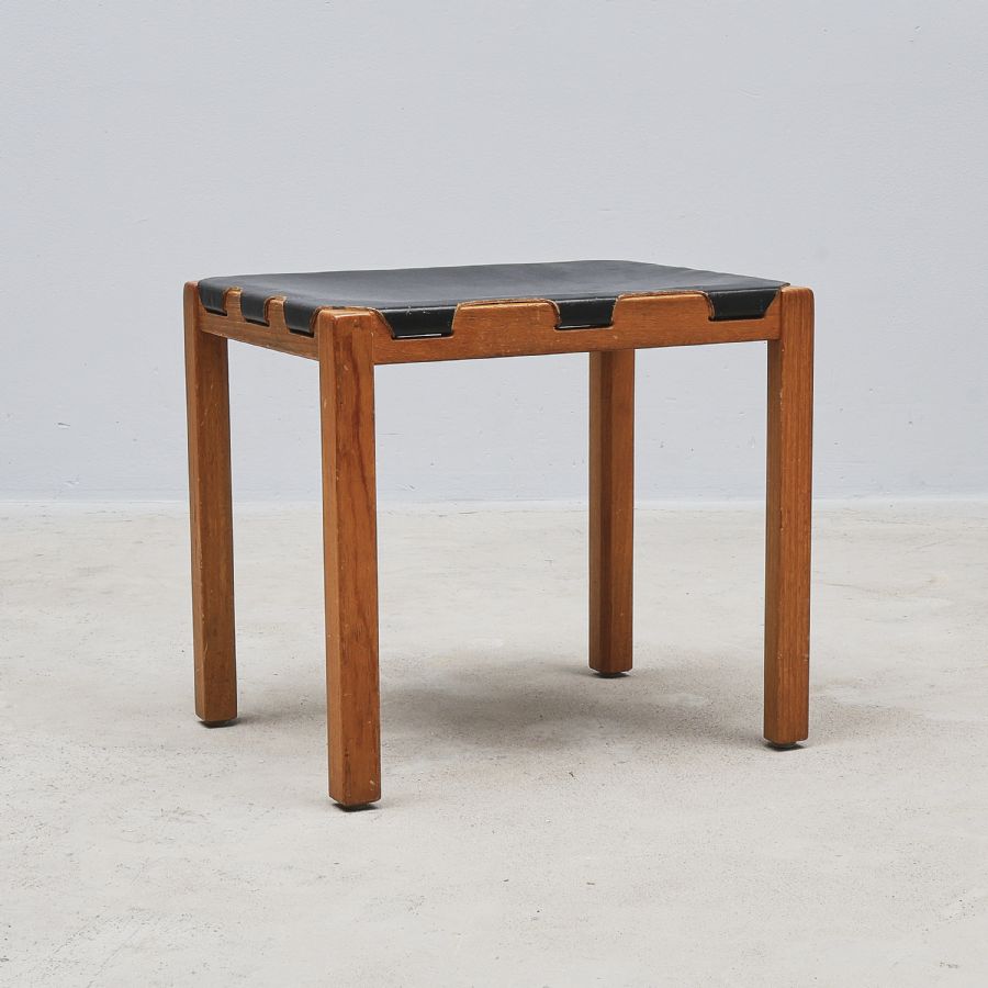 ”Glasmäster”, Markaryd, teak, lädersits. Längd: 45 cm, djup: 35 cm, höjd: 41 cm