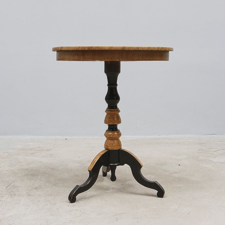Intarsia, 1800-tal. Diameter: 60 cm. Höjd: 75 cm