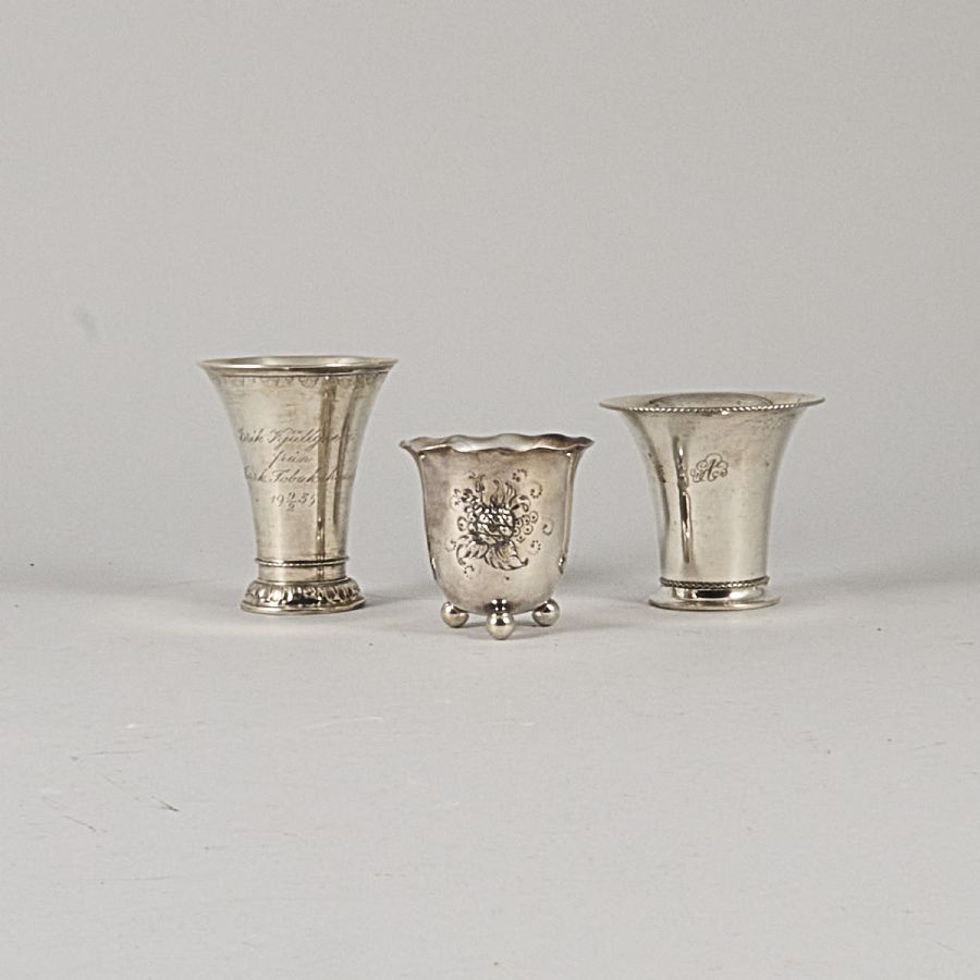 3 delar, silver, gravering. Höjd: 7-10 cm, vikt: 200g ca