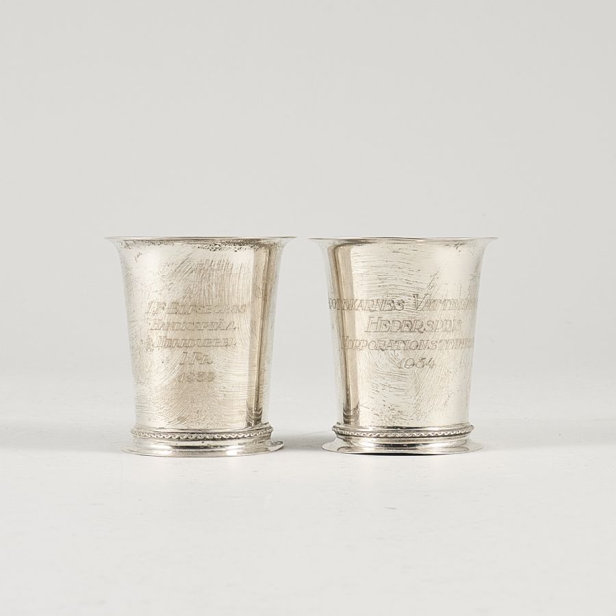 Ett par, silver, CG Hallberg, med gravyr. Höjd: 8 cm. Vikt: 140 g ca