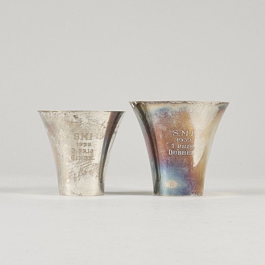 2 st, silver, med gravyr. Höjd: 7-8 cm, Vikt: 120 g ca