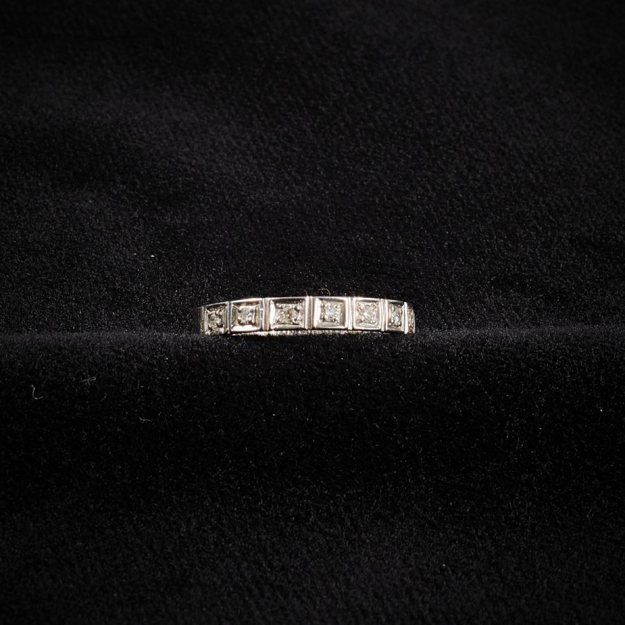 18K vitguld, med diamanter, 7x0,01ct, storlek: 17, med gravyr/inskription. Vikt: 2,2g