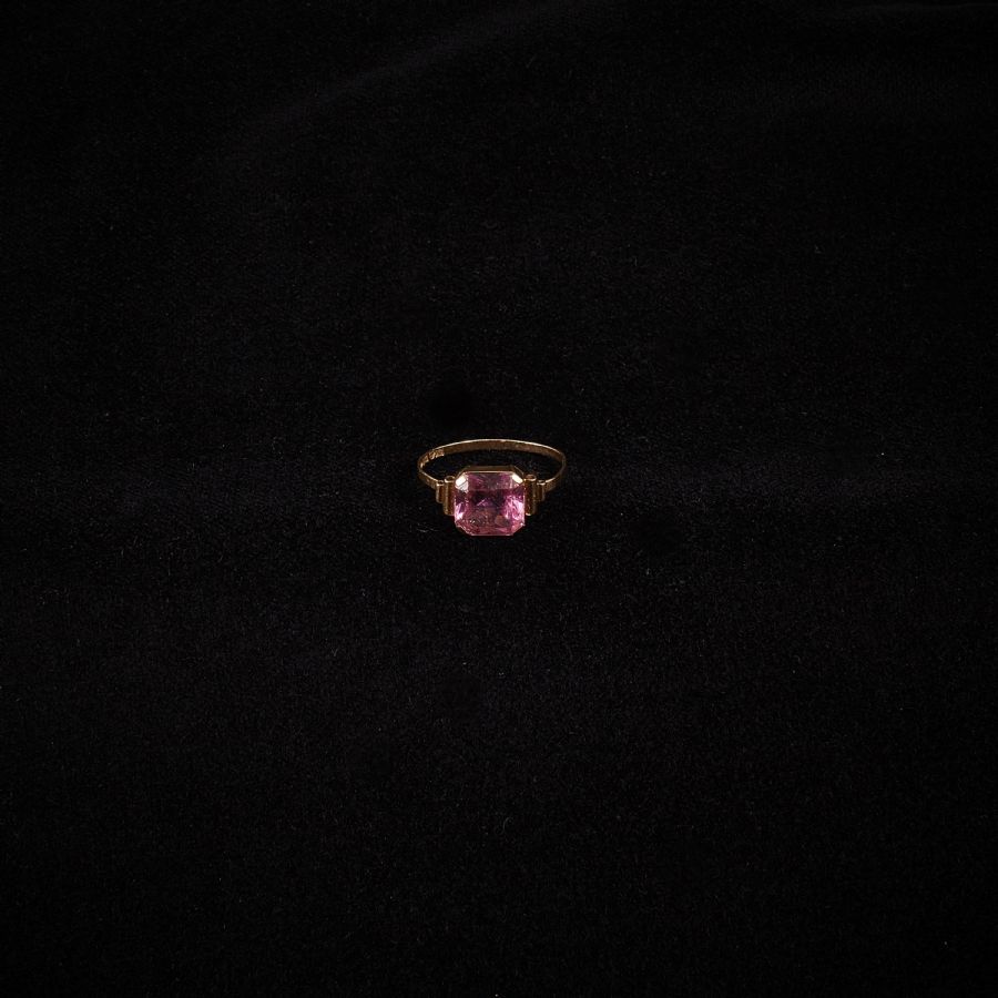 18k guld, med sten. Vikt: 3,2g ca brutto, Ringmått..//