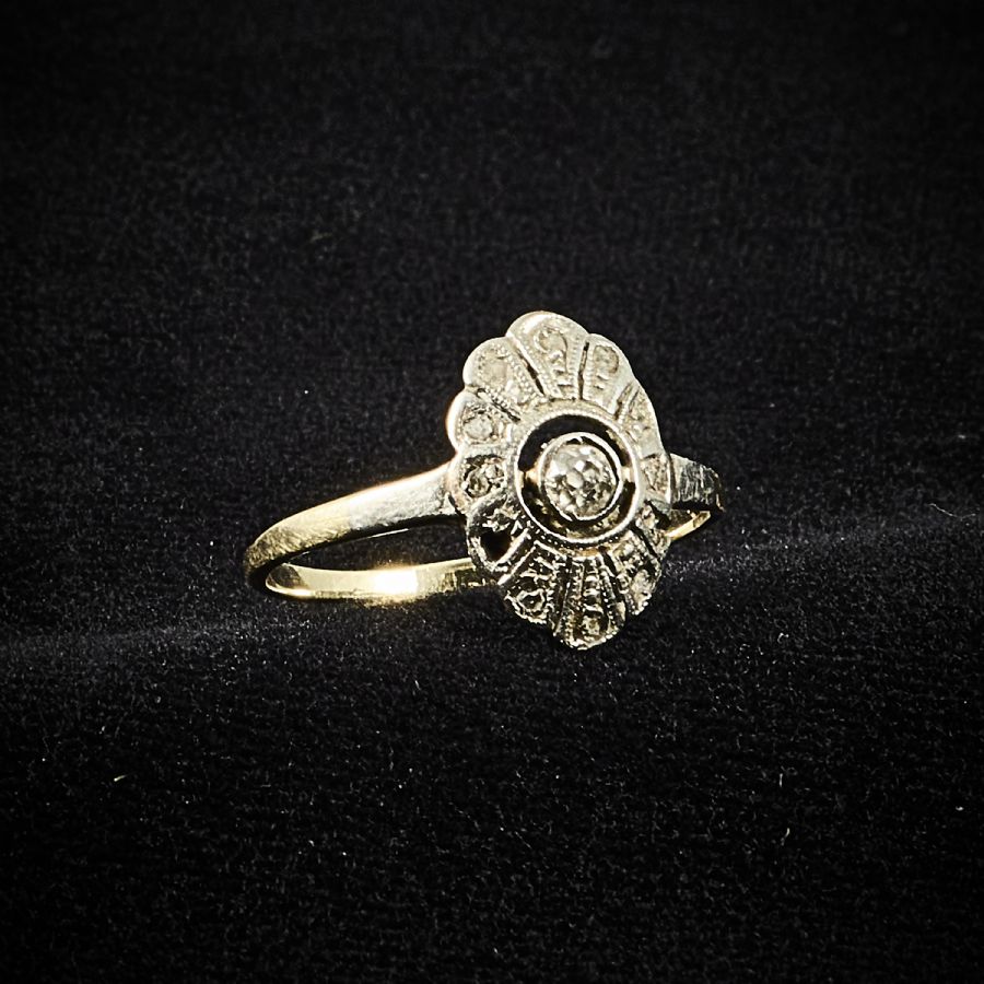 18k guld, 1925, omarbetad 1981, oäkta stenar. Vikt..//