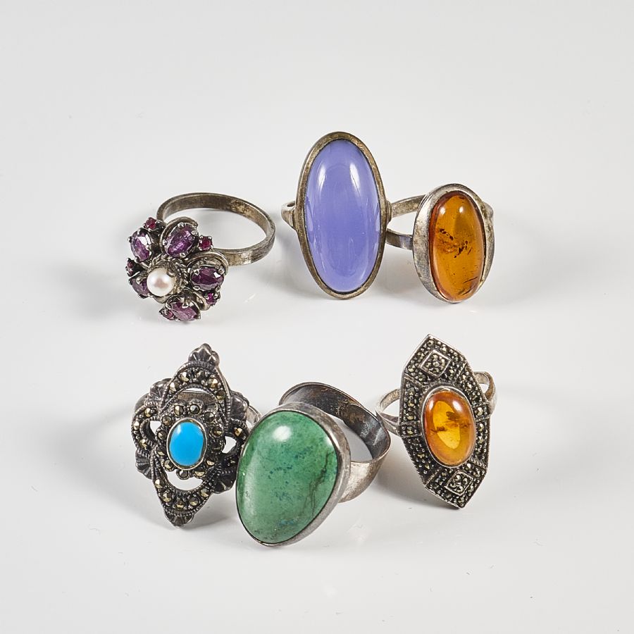 2 st, varav ett med tigeröga, silver, bland annat ..//