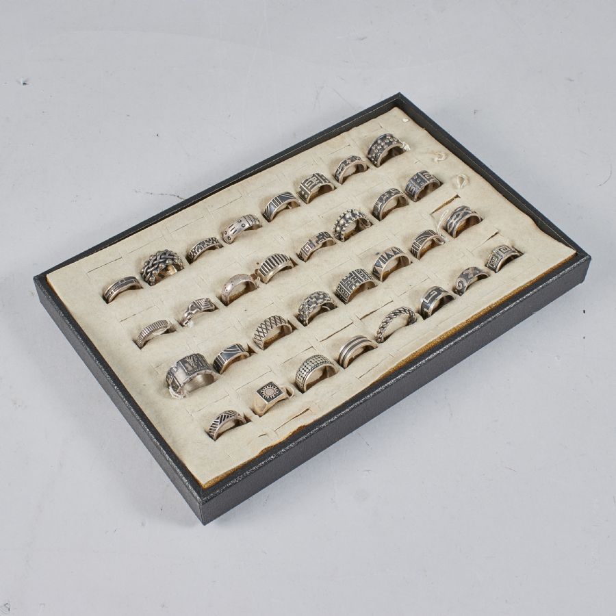 32 pieces, silver, herrmodell, ca 285 g, ringmått: 17-22, 5,