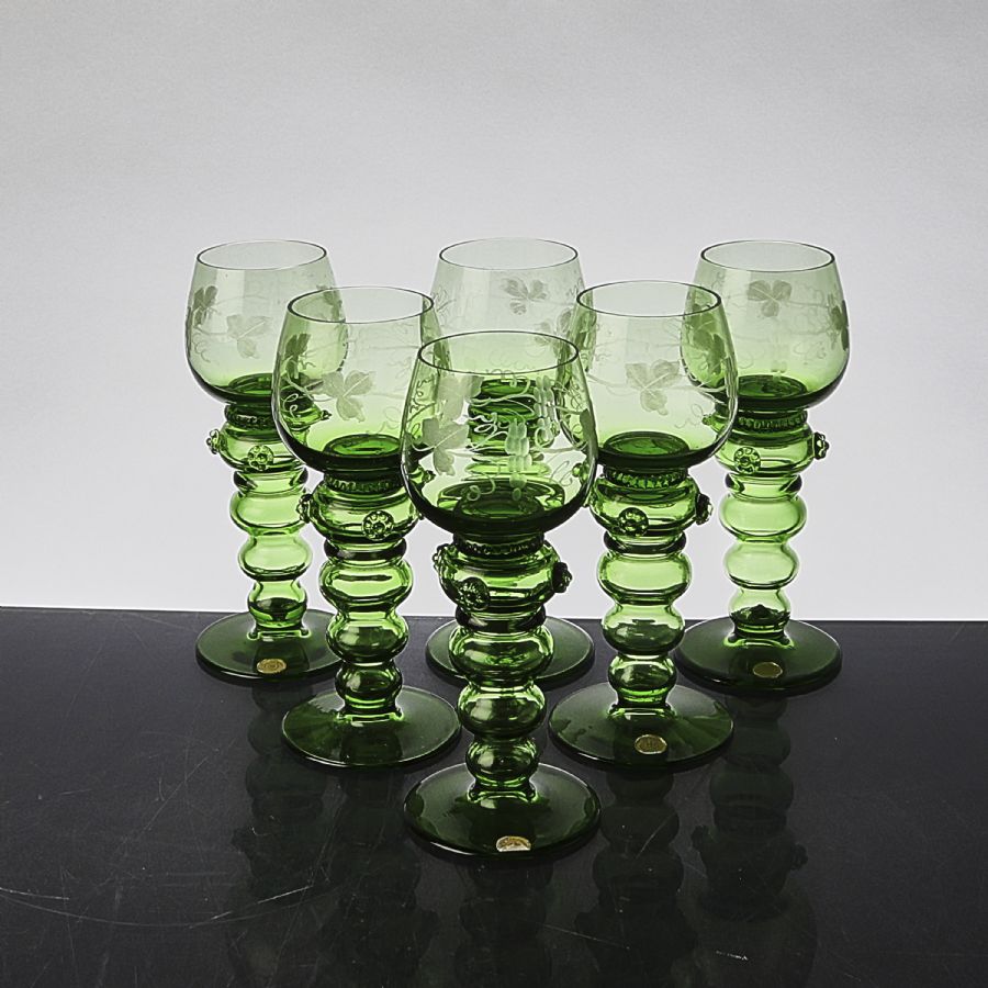 6 st, Reijmyre Glasbruk, "Antik". Punsade, Höjd: 8 cm