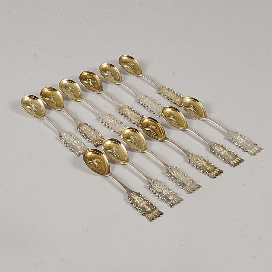 silver, i schatull, 12+ 12 delar, Bruttovikt: 455g..//