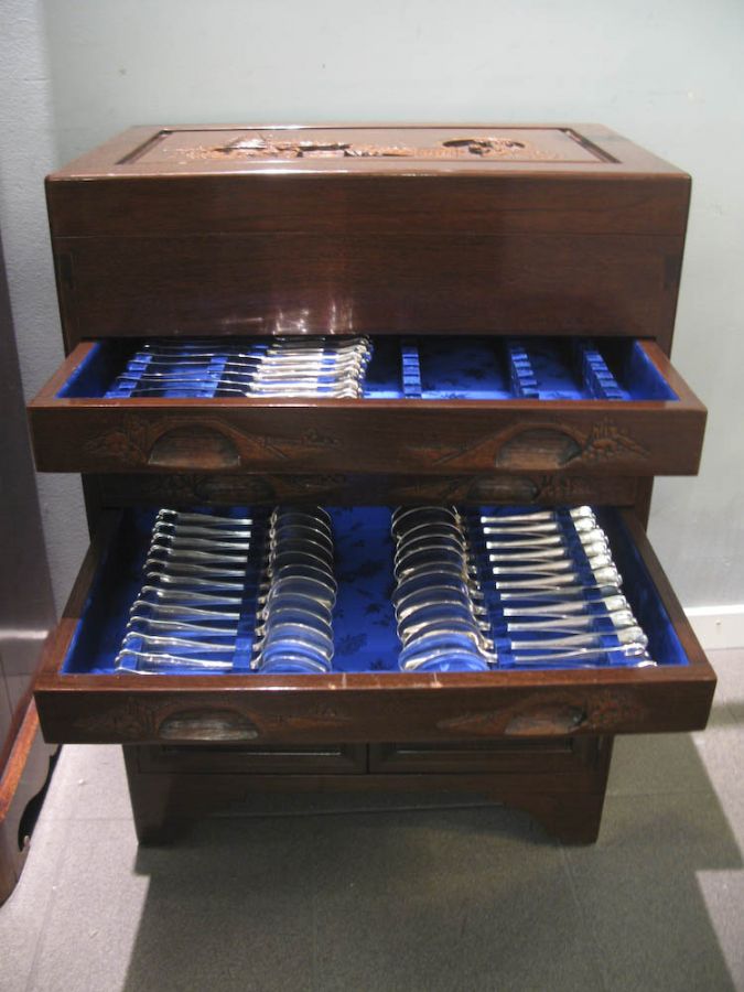 Schatullskåp + bestick