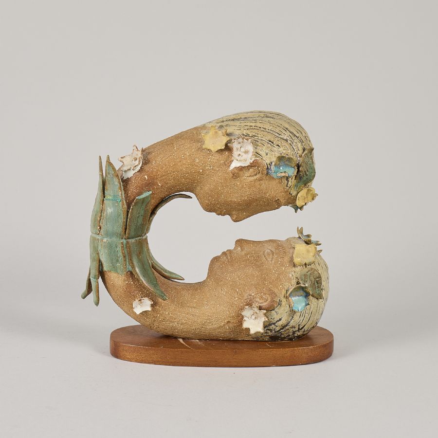 Stig Lindberg (1916-1982), Sweden. "Narcissus", Gustavsberg, Sweden, 1960s, stoneware, oartially glazed, wooden plinth, sigernad med studiohanden. Width: 20 cm. Height: 19, 5 cm, minor cracks.