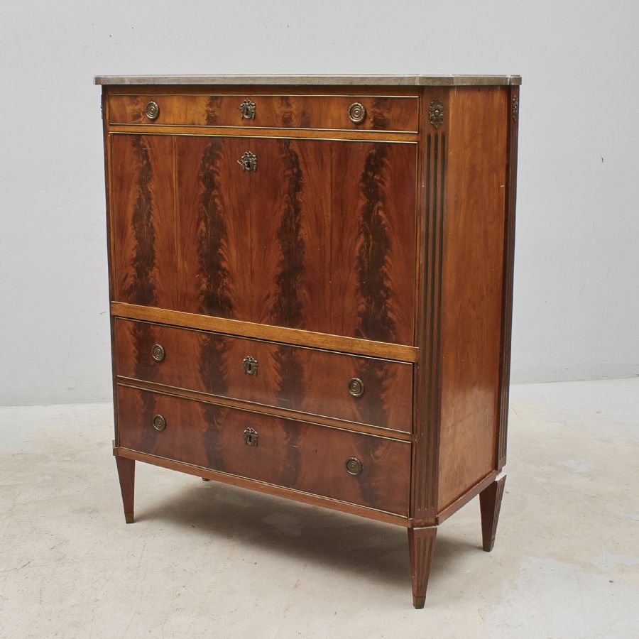 Sengustaviansk, mahogny. Bredd: 110 cm, djup: 50 cm, höjd: 133 cm