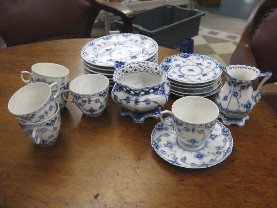 ca 14 delar, Kunglig Dansk, Helblond, bl a 6 koppar m fat, sockerskål, gräddkanna, 6 assietter