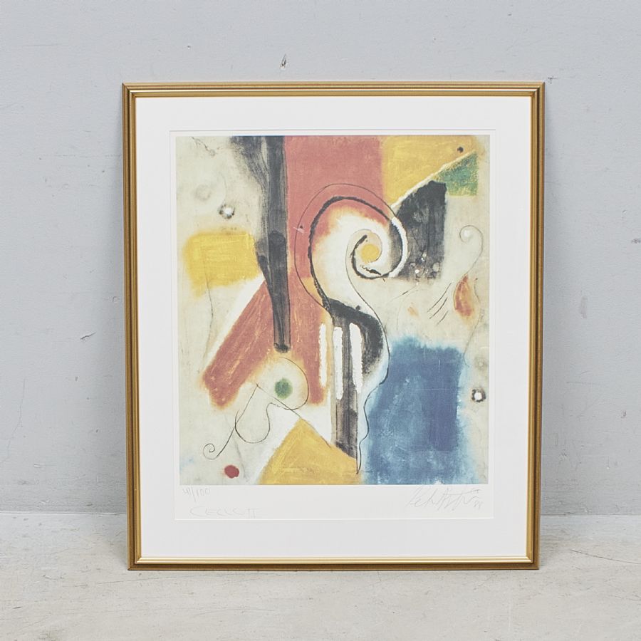 Silkscreen, "Cello II". Signerad, numrerad 41/100, daterad -88. Bildmått: 73x60 cm, yttermått inklusive ram: 92x79 cm