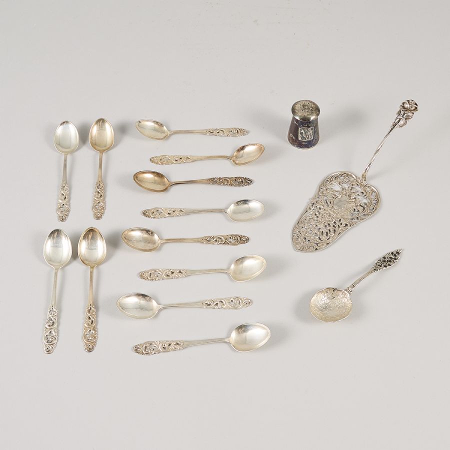 12 pieces, + plaque, silver. Length: 9, 5-11, wei..//