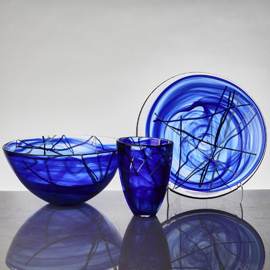 + skål, 2 delar, Ulrica Hydman-Vallien (1938-2018)..//