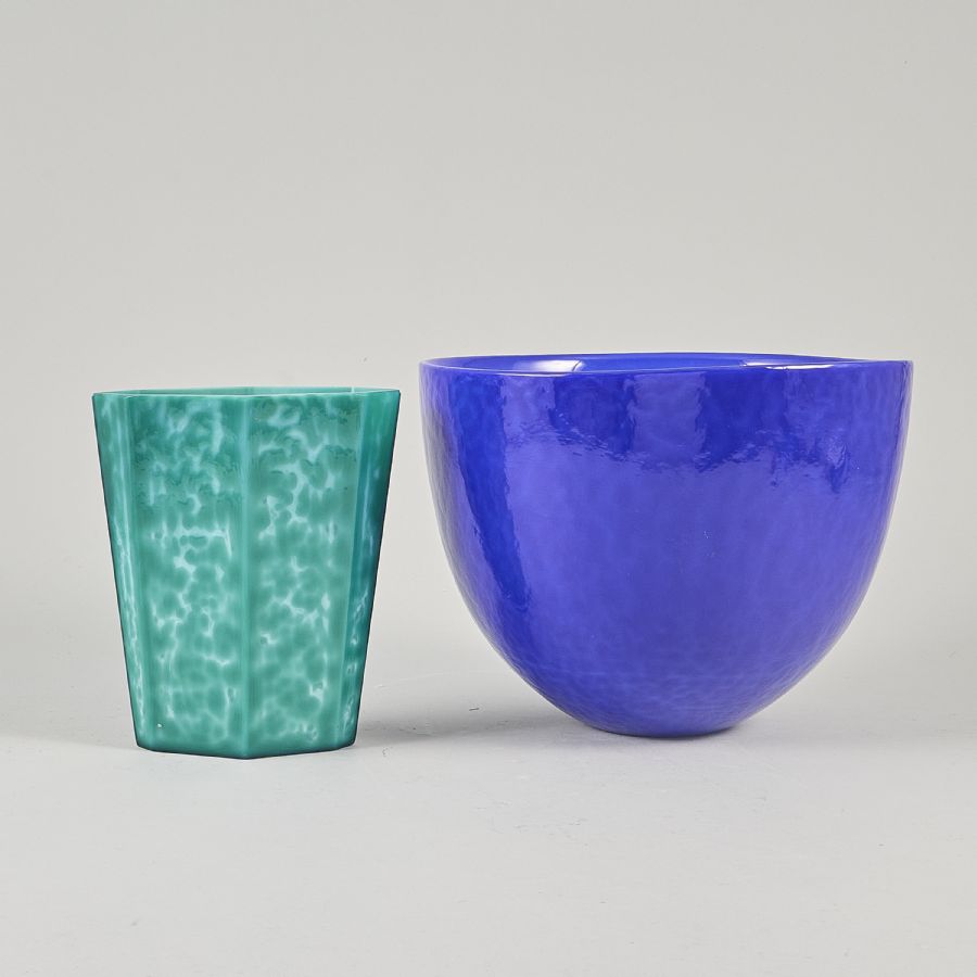 Skål, + vas, Målerås/Pukeberg. Höjd: 19-20 cm