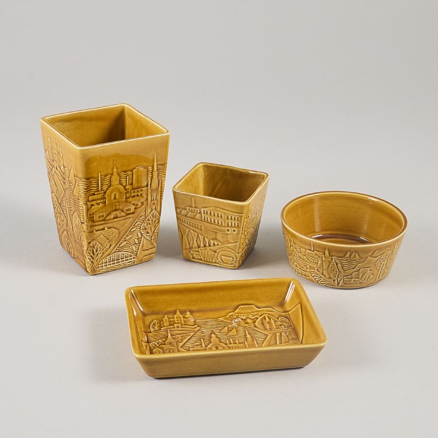 + fat + vas, Rörstrand, Lidköpings Kinnekulle, gulglaserat stengods. Höjd: 3-11 cm