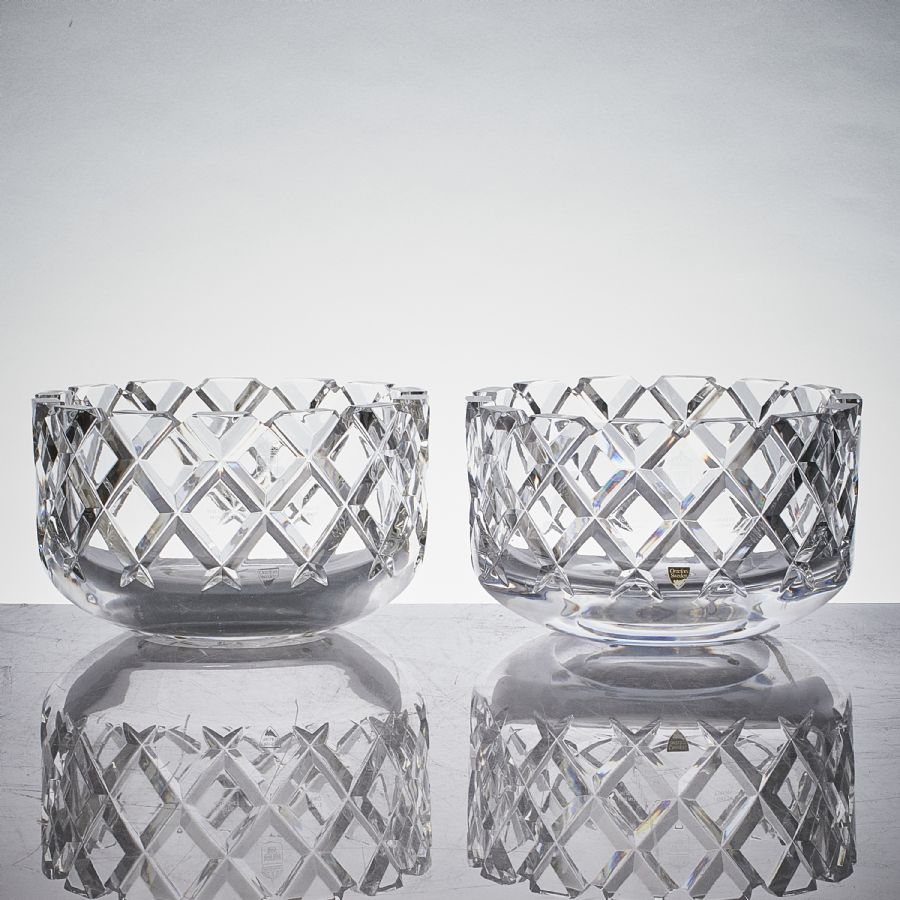 Skålar, 2 st, Orrefors. För nit & redlighet i rikets tjänst