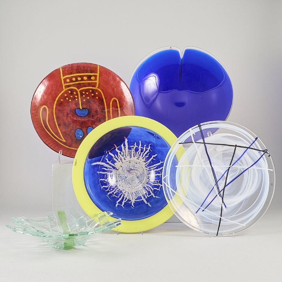 Konstglas, 5 delar. Diameter: 34-40 cm